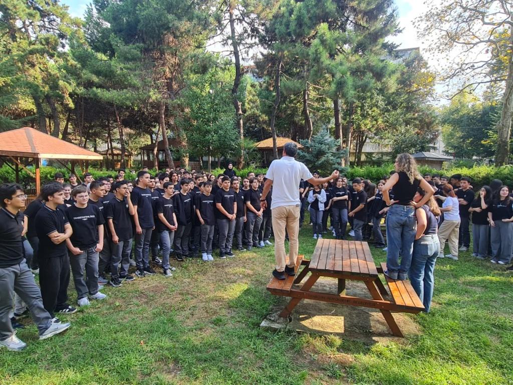 11.Sınıf öğrencilerimiz çocuklarımızı bu bahçede kabul ettiler.Onlara tecrübelerini ve okulumuza ait özel duygularını aktardılar.